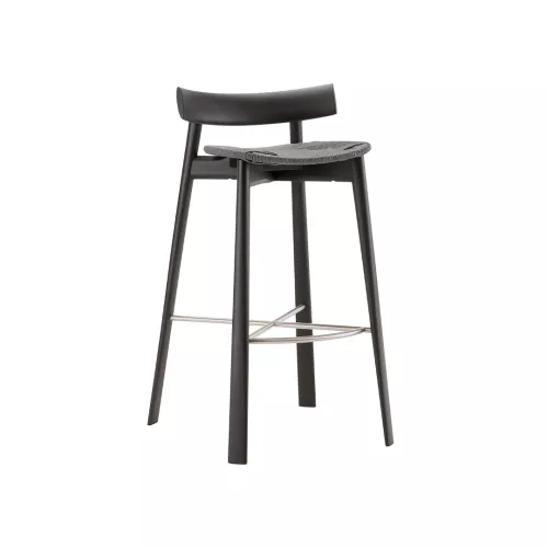 The Romeo BK W wooden barstool blends a light, modern aesthetic with exceptional structural strength. Crafted from ash wood with a stainless steel footrest, its legs elegantly transition from elliptical to flat. The seat is woven with papercord or polyester rope, while the backrest combines strength with a refined, minimalist form.