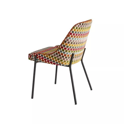 Romie S is a comfortable chair with a strong steel frame, powder-coated and customizable in any RAL color. It features a fully upholstered seat and back, with a wide selection of high-quality fabrics or faux leather. Designed for versatility, Romie S fits perfectly in horeca environments and various interior design styles.