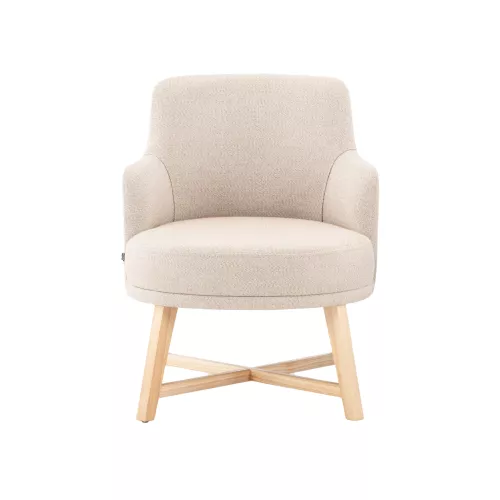 The Ronny lounge armchair is a stylish and comfortable seating solution designed to enhance the atmosphere of modern interior restaurants. Built on a solid beech wood frame, this armchair combines durability with timeless elegance. Its soft curves and well-proportioned form create a welcoming look that invites guests to sit back and enjoy their time in comfort. Whether used individually or as part of a coordinated dining space, the Ronny armchair delivers both functionality and aesthetic appeal. Its sturdy wooden structure ensures reliable support, while the lounge-style seating offers relaxed ergonomics perfect for long conversations and leisurely dining. A refined choice for any restaurant that values both design and guest comfort.