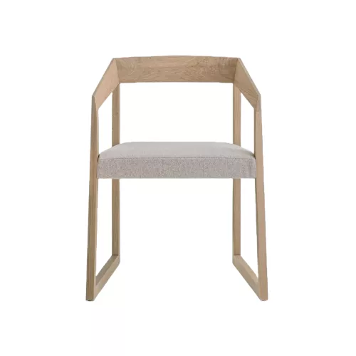 Sign 455 is a minimalist chair with armrests, designed with clean lines and timeless elegance. Featuring a solid oak wood frame and an upholstered seat, it combines functionality and style. Available in various wood stain finishes, it’s the ideal fit for modern HORECA interiors.