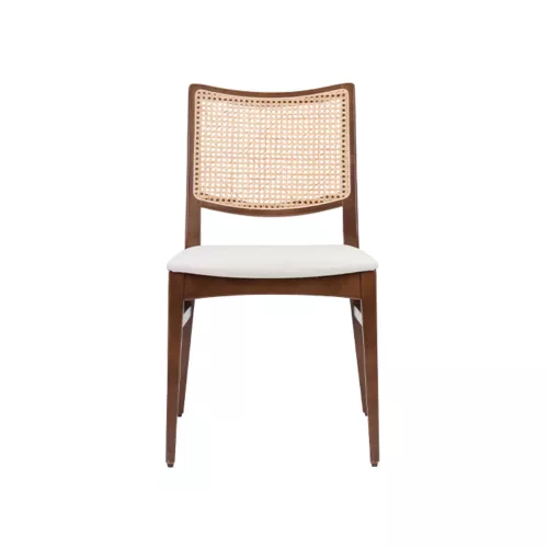 Soul S Wicker is a stylish wooden chair designed for horeca settings. It features a durable beech wood frame, customizable in various stain colors, with an upholstered seat and a cane backrest for natural texture. As part of the Soul collection, it offers both elegance and practicality for diverse interior styles.