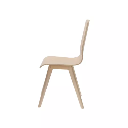 The Stream WS wooden chair is a popular choice for comfort and ergonomics. Its one-piece plywood seat and backrest offer natural support, while the beech wood frame ensures durability. Smooth lines and multiple wood stain options create a versatile, stylish design, perfect for a wide range of horeca settings.