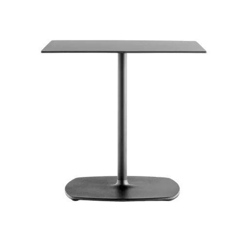 Table base with rounded corners made of sandblasted cast iron, paired with a tubular steel column. Its smooth contours and sturdy structure make it a perfect fit for both square and round tabletops. A refined solution for indoor hospitality and commercial settings.