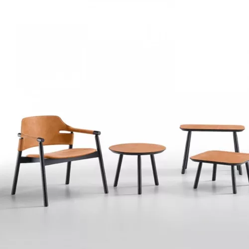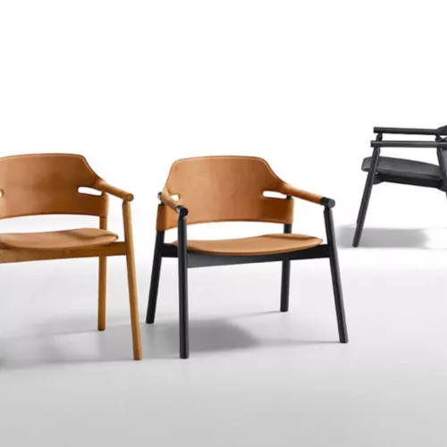 The Suite AP L CU is a refined lounge armchair designed exclusively for horeca spaces. Featuring a solid ash wood frame available in multiple wood stain finishes, it offers durability with elegance. The seat and backrest are upholstered in high-quality hide, ensuring a sophisticated look. Ideal for lounges, hotel lobbies, and stylish contract interiors.