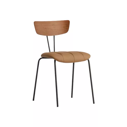 Summer is a stylish metal chair with a solid steel frame, combining a soft upholstered seat with a beautifully finished wooden backrest available in various stain colors. The upholstery comes in a wide range of professional fabrics or faux leather. Versatile and durable, Summer is a great fit for any HoReCa location seeking comfort and modern design.