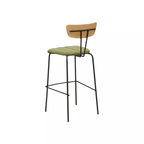 Summer BK is a stylish barstool featuring a sturdy steel frame, an upholstered seat, and a wooden backrest. The upholstery is available in a wide selection of professional fabrics designed for intense wear. Equipped with a metal footrest, it is perfect for bars and various horeca locations, fitting effortlessly into multiple interior design styles.