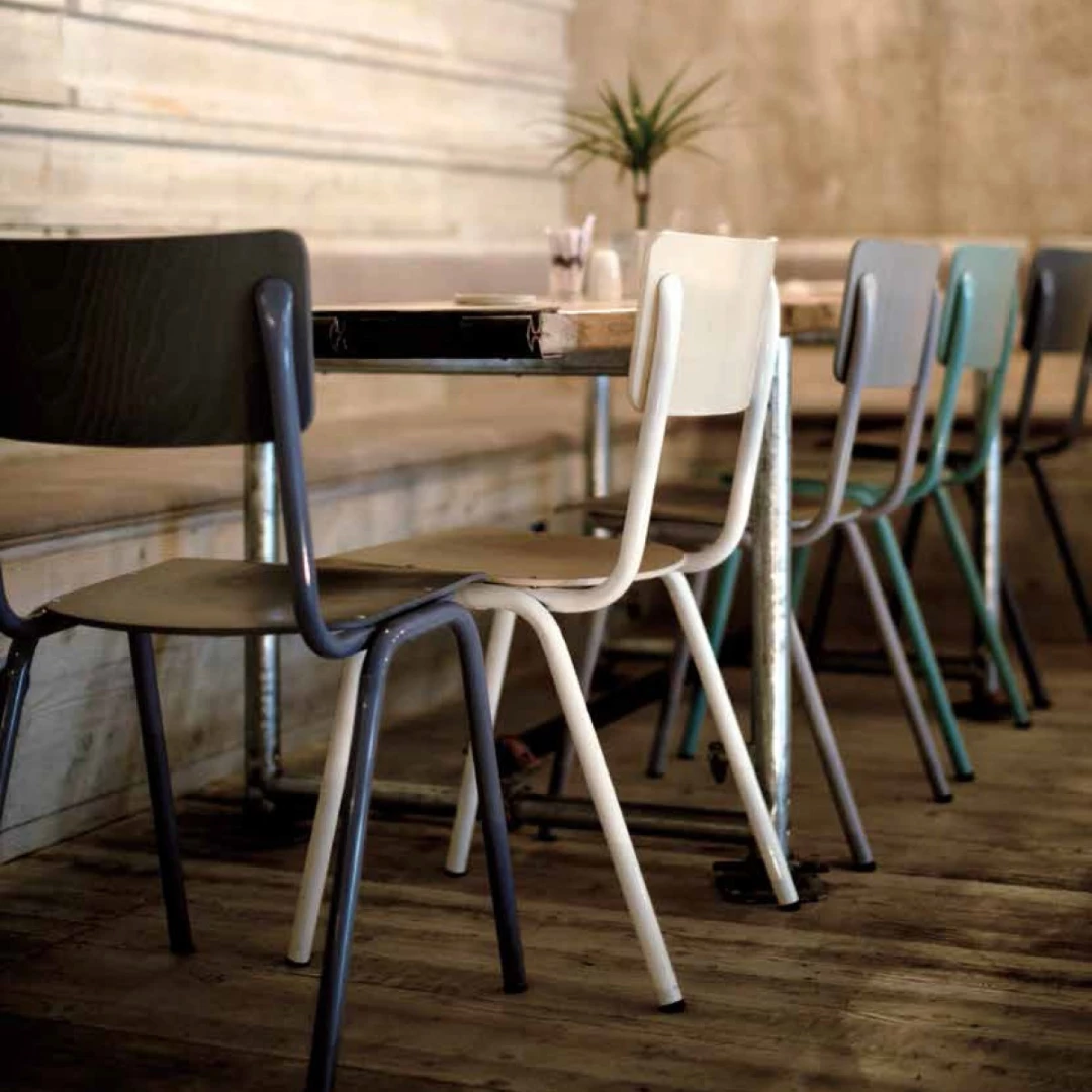 Suzanne S is a stackable chair with a durable metal frame and a wooden seat and backrest, ideal for both practical and stylish interiors. The frame is available in a wide range of RAL colors, and the seat and backrest come in various finishes to suit any décor. Suzanne S offers functionality without compromising on aesthetics.