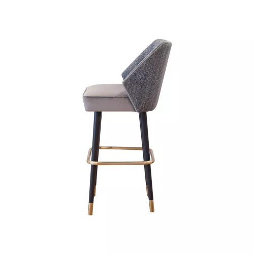 Temple BK is a modern barstool with a solid beech wood frame and a polished brass metal footrest. Featuring a comfortable upholstered seat and back, it is padded with high-resolution foam for long-term durability. With numerous finish and upholstery options, it is an ideal choice for stylish horeca locations and upscale interiors.