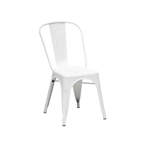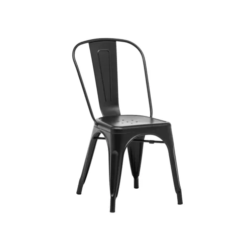 Tolix Style Metal is a lightweight and stackable chair made of powder-coated steel, perfect for indoor use. Its industrial design and retro look make it ideal for trendy cafés, bars, or bistros. Available in black or white, this durable chair is easy to store and move, making it a versatile choice for any modern horeca space.