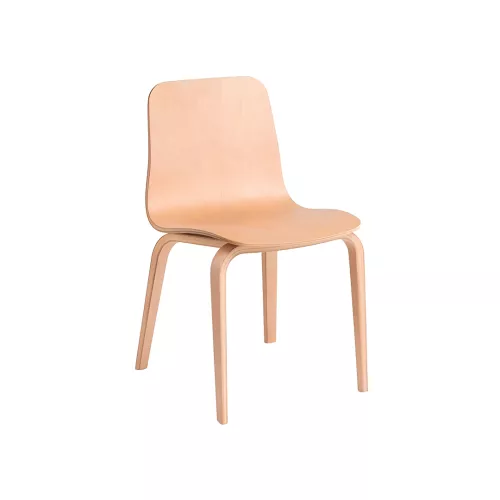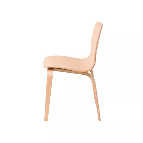 The Tommy chair showcases contemporary elegance with advanced wood-bending craftsmanship. Its seat and legs feature subtle thickness variations, emphasizing thin plywood edges while ensuring strength. Smooth, organic lines create a modern and inviting form. Crafted from beech plywood and available in multiple stain colors, it’s ideal for stylish horeca spaces.