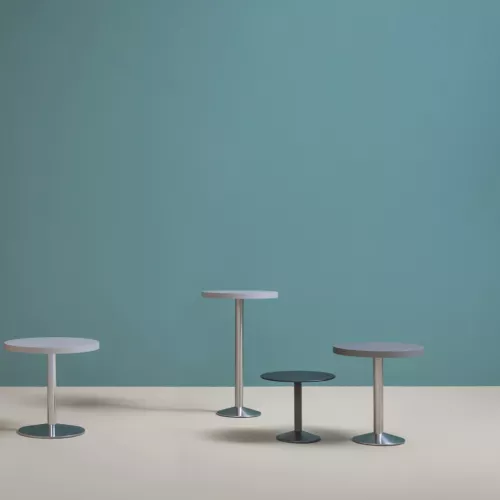 Tonda 4154 is a practical and functional high table base, ideal for bars and horeca spaces. It features a sand-blasted cast iron base and a steel column. Suitable for round tops up to ⌀70 cm. Easy to assemble and compatible with a wide range of tabletops. Optional outdoor finish available. Height: 110 cm.
