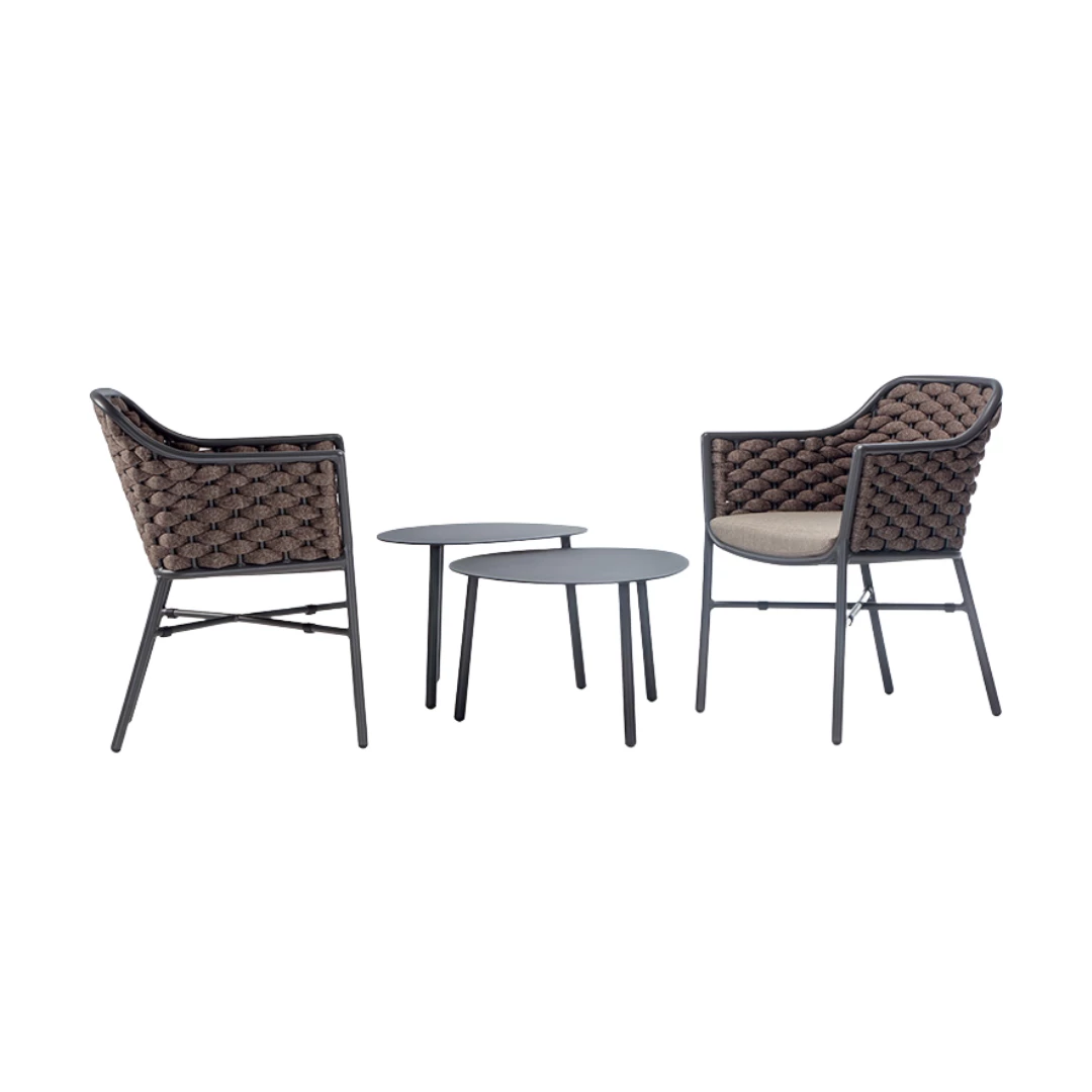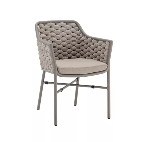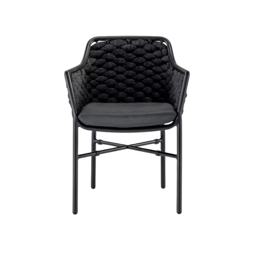 Tosca is a stylish outdoor armchair designed for modern hospitality terraces. Built on a durable Aluminium frame, it is wrapped in textylene and rubber rope for strength and comfort. The chair is stackable and features soft textylene cushions. Multiple versions are available, making it easy to adapt to any outdoor setting in horeca environments.