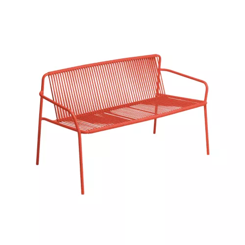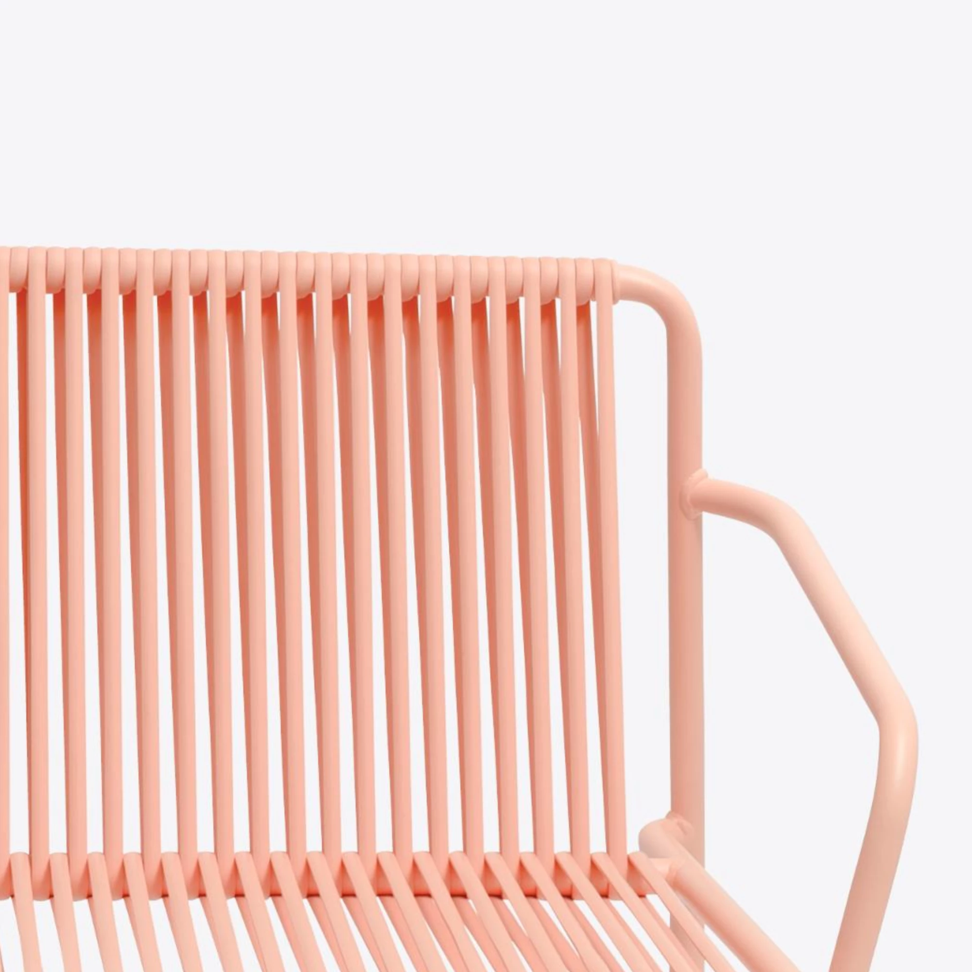 Inspired by the welcoming charm of mid-century outdoor design, this two-seater sofa offers a contemporary reinterpretation of classic patio seating. The stackable structure is built from a Ø20 mm steel tube frame with a durable powder-coated finish for exterior use. The seat and backrest are crafted from vertically woven extruded PVC with a nylon core, ensuring flexibility, weather resistance and long-lasting comfort. Specifically designed for outdoor environments, it is ideal for terraces, gardens, poolside areas and hospitality venues.