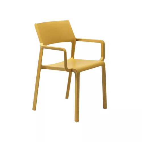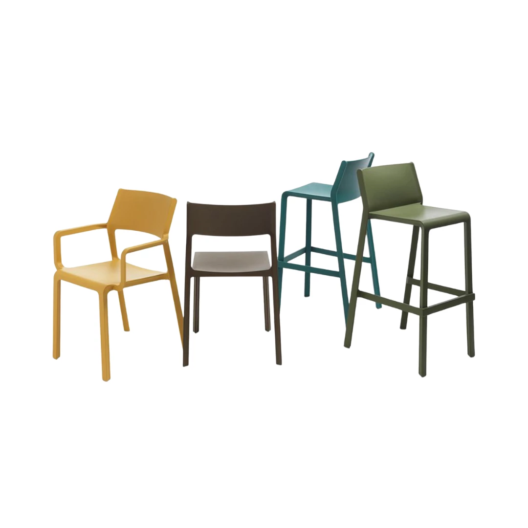 Trill A is a stackable armchair designed to combine durability, functionality, and modern aesthetics. Made from uniformly colored fiberglass polypropylene resin and treated with UV additives, it offers excellent resistance to weather and fading, making it perfect for both indoor and outdoor use. The chair features integrated armrests for added comfort, non-slip feet for stability, and a refined matte finish that enhances its elegant appearance. Its stackable design ensures easy storage and efficient use of space, whether in a terrace, café, or hospitality setting. Trill A is available in a range of stylish colors: white, anthracite, grey, rosa bouquet, tortora, agave, ottano, tabacco, and senape.