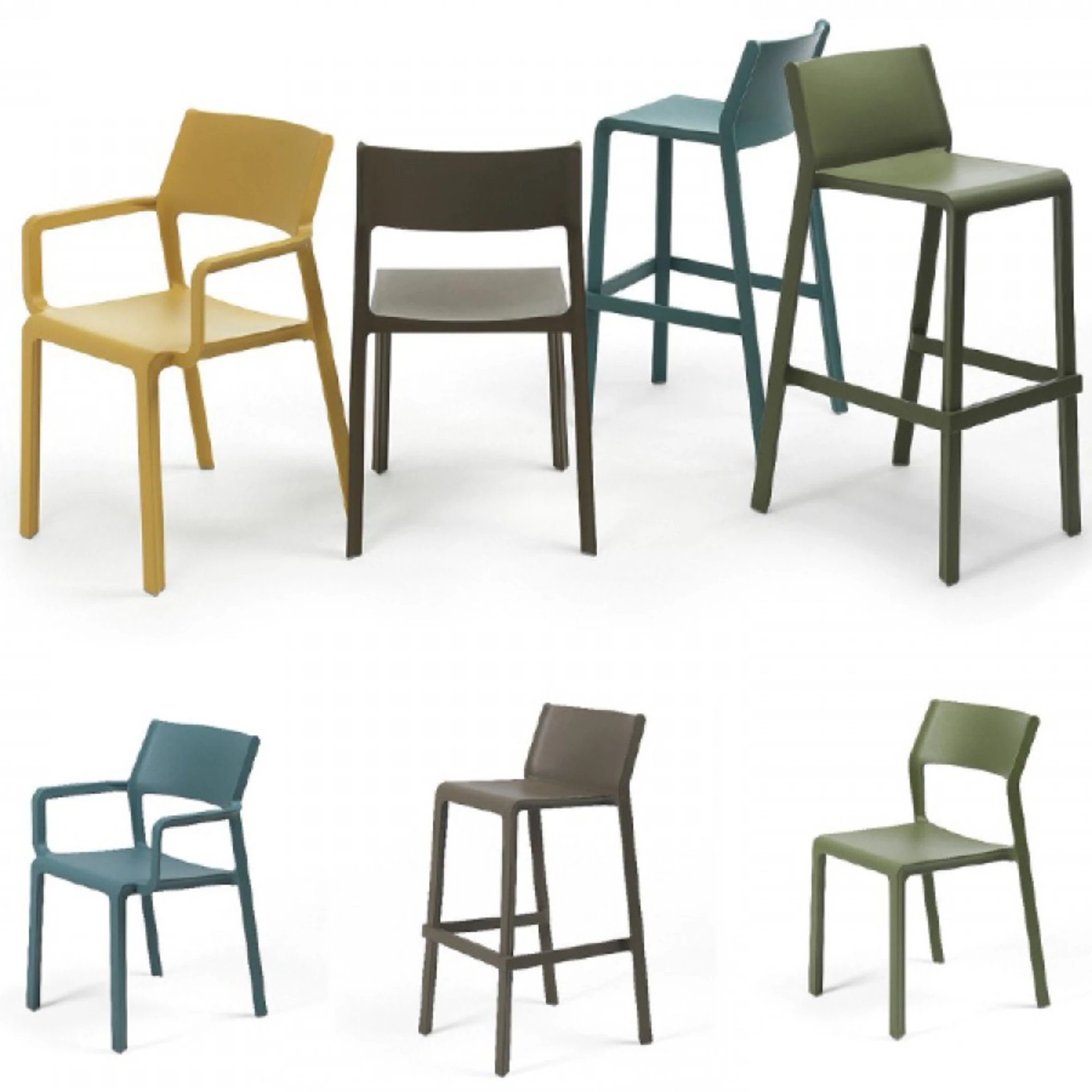Trill S is a stylish and practical stackable chair without armrests, suitable for both indoor and outdoor use. Made of uniformly colored fiberglass polypropylene resin with UV additives, it offers excellent durability and color resistance even under prolonged sunlight. The chair features non-slip feet for extra safety and a sophisticated matte finish that adds elegance to any environment. Its lightweight yet robust construction makes it easy to handle, move, and store, making it an ideal choice for terraces, cafés, and event spaces. The stackable design allows for space-saving storage when not in use. Trill S is available in a wide range of colors, including white, anthracite, grey, rosa bouquet, tortora, agave, ottano, tabacco, and senape.