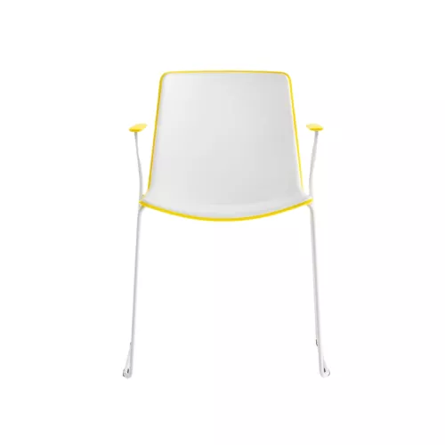 Tweet is a collection of seats that combines the rational and clean design of the body with a wide choice of frames and finishes, ensuring maximum adaptability in both contract and residential settings. This stackable armchair features a double injection-molded polypropylene shell and a sleek Ø11 mm steel rod sled frame, combining functionality and contemporary style.