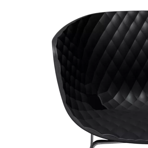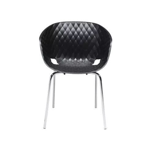 The Uno 594 is a stylish design armchair featuring a sturdy steel frame with four legs and a comfortable polypropylene shell. Its metal structure is available in a chromed finish or with a durable powder coating suitable for outdoor use, in black or white. On request, the chair can be specially treated for full outdoor resistance. Fast delivery is available for the version with a black shell on a black painted frame and the version with a white shell on a white painted frame.