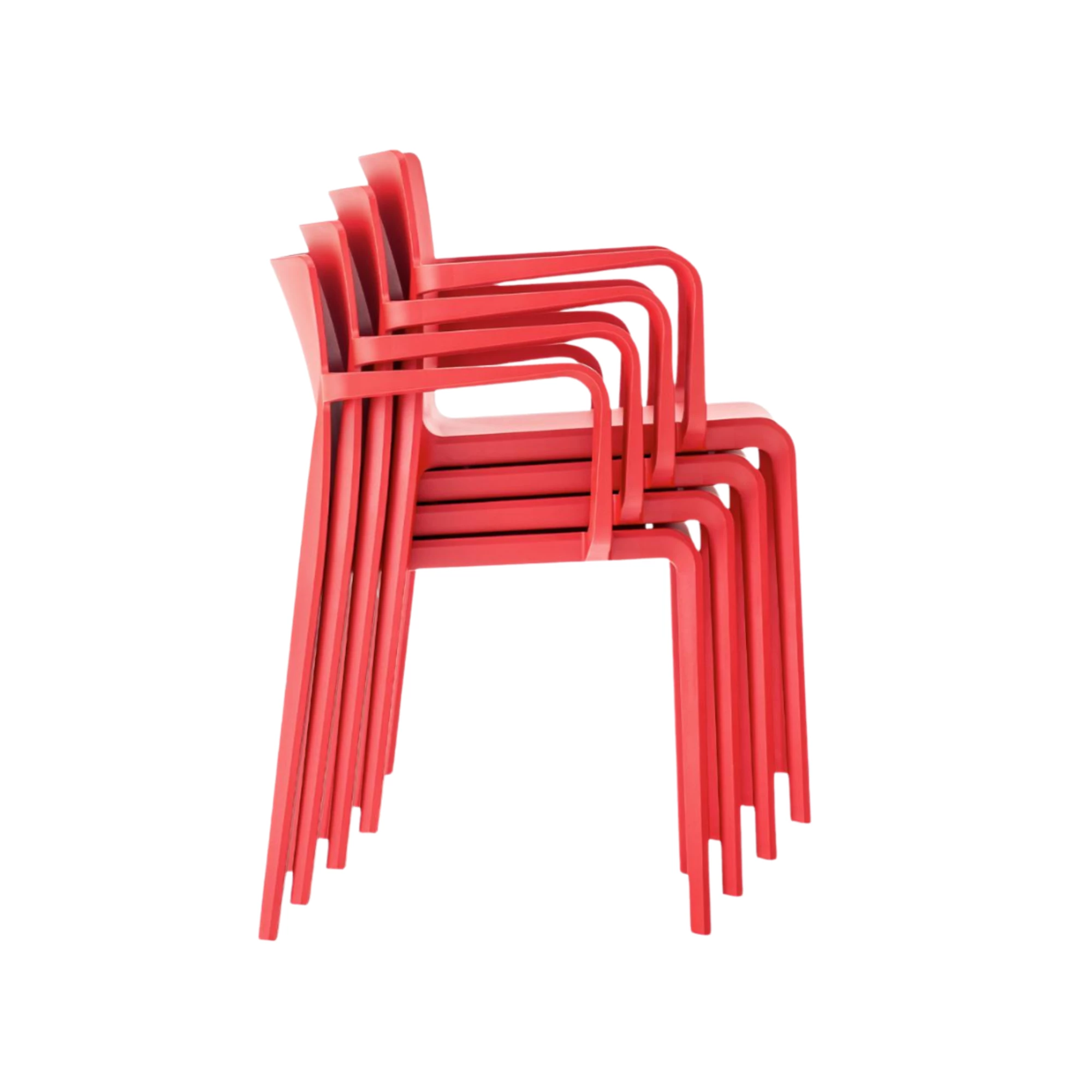 The Volt 675 armchair stands out with its refined silhouette, offering a perfect balance of elegance and comfort. Its slender frame and ergonomic curves are achieved through gas-assisted injection molding of polypropylene, reinforced with glass fibers for durability and structural integrity. An ideal choice for contemporary contract and hospitality settings.