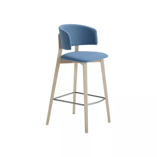 Wrap Wood BK – C64 is a stylish wooden barstool created for horeca environments. Its solid beech frame is available in various stains or RAL colors. The curved backrest and upholstered seat ensure superior comfort, while the durable materials support intense daily use. Highly customizable, it fits seamlessly into a wide range of commercial interiors.