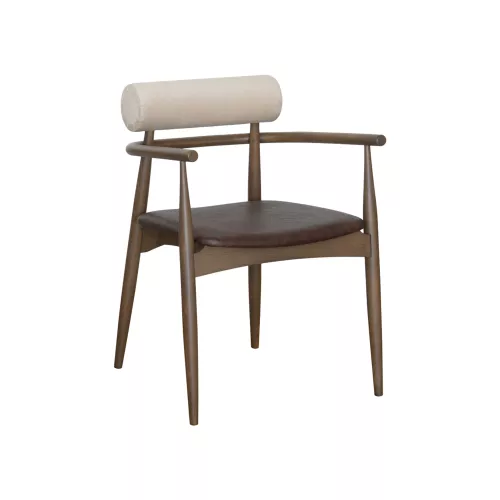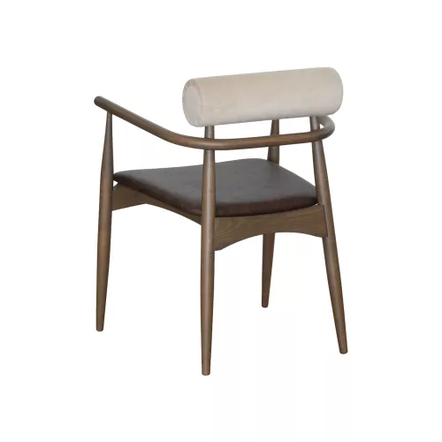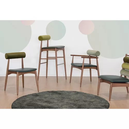 Yoto A is a refined indoor restaurant chair crafted with a solid beech wood frame for strength and longevity. It features an upholstered seat and backrest, each covered with two different fabrics, allowing for unique combinations of textures and colors. This elegant contrast not only enhances visual appeal but also gives interior designers the flexibility to match any hospitality concept. A perfect choice for upscale dining spaces, cafés, and hotels seeking distinctive furniture with a personal touch.