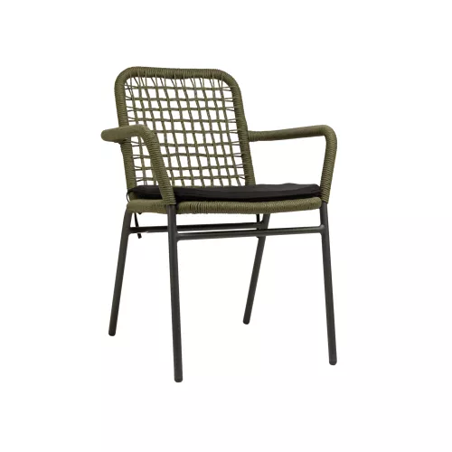 The Amellie terrace chair is a perfect blend of elegance, durability, and functionality—designed for high-performance use in restaurant terraces and outdoor hospitality settings. Built with a lightweight aluminium frame and finished in anthracite powder coating, it offers both a sleek appearance and resistance to weather conditions. The UV-resistant PE twisted rattan adds a stylish, natural texture while ensuring long-lasting color stability under sunlight. For added comfort, a black cushion is included. Amellie is stackable, making it ideal for flexible layouts and efficient storage. Available in three refined color combinations—Charcoal/Natural, Charcoal/Charcoal, and Charcoal/Olive—this chair fits seamlessly into both modern and rustic terrace designs, delivering reliable comfort and contemporary charm.