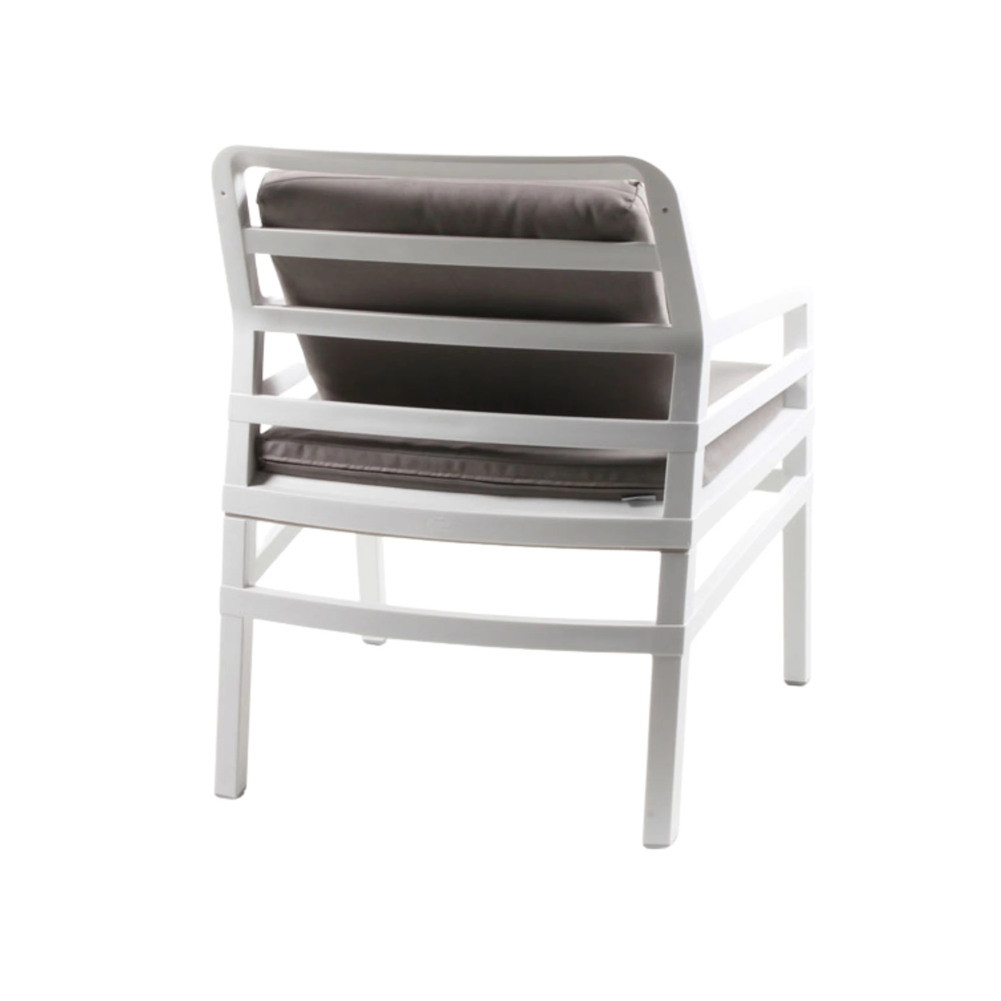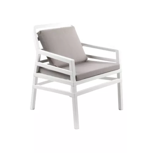The Aria chair is a perfect blend of modern design and outdoor functionality. Crafted from durable polypropylene with non-slip feet, it ensures stability and safety on any surface. Available with a white or tortora frame, it offers vibrant cushion options in lime, sardinia, and grey, allowing you to personalize your space. This weather-resistant chair is ideal for outdoor restaurants, cafés, and bistros, combining comfort, elegance, and practicality in one stylish solution.