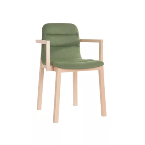 The Bello A is a stylish wooden armchair made of solid beech wood and beech plywood, featuring an upholstered seat and back for maximum comfort. Perfect for restaurants, cafés, bistros, and fast-food interiors, it combines durability, elegance, and timeless design for any modern dining space.