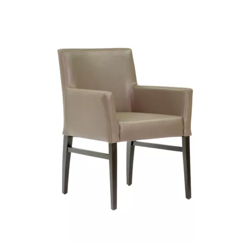 Bernard A is a comfortable wooden chair with armrests, crafted with a durable beech wood frame. Designed for horeca use, it offers style and reliability in any setting. The seat and back can be upholstered in a wide range of professional fabrics or faux leather, all suitable for intense wear and high-traffic interiors.