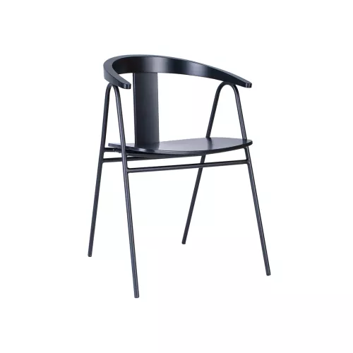 Buve is an armchair designed for restaurants, cafés, bistros, and pubs. Made of metal with a beech wood seat, it combines durability with style. The seat can be veneered or upholstered in a wide range of shades and textures to match any interior design.