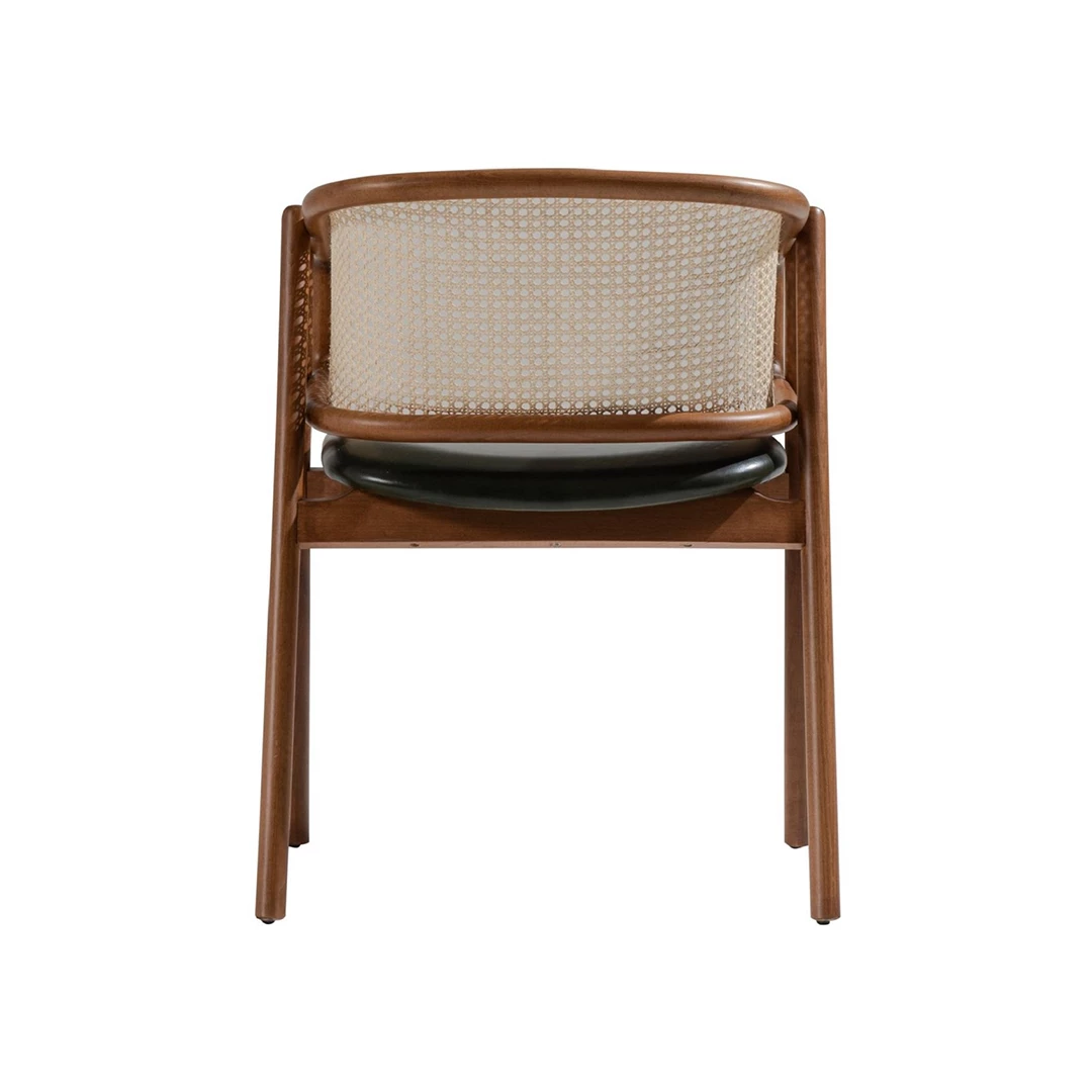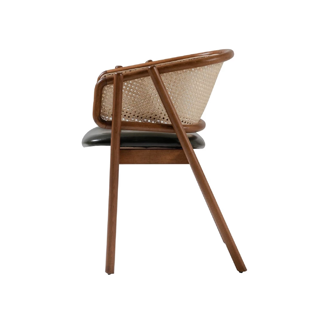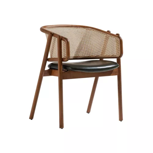 The Eleran chair combines timeless appeal with comfort and versatility. Featuring a sturdy beech wood frame available in multiple colors, a soft upholstered seat, and a stylish cane backrest, it blends effortlessly with various interior styles. Seat upholstery is offered in a wide range of professional fabrics or faux leather, making it ideal for restaurants, hotels, and other horeca spaces.