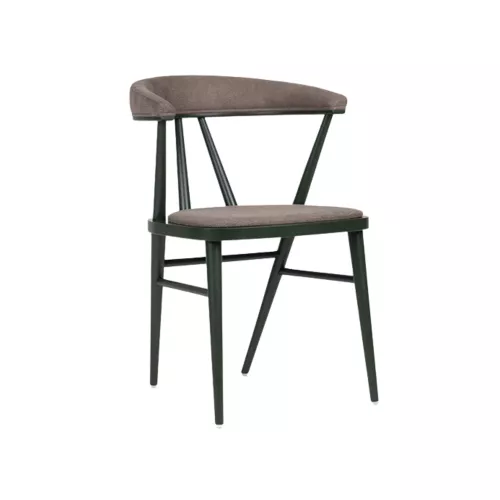 Etela UPH is a refined wooden chair with armrests, featuring an upholstered seat and backrest. With a solid beech wood frame available in multiple stain finishes, it blends Nordic elegance with modern hospitality demands. The chair offers both comfort and style, and its upholstery can be customized in a wide range of professional fabrics or faux leather.