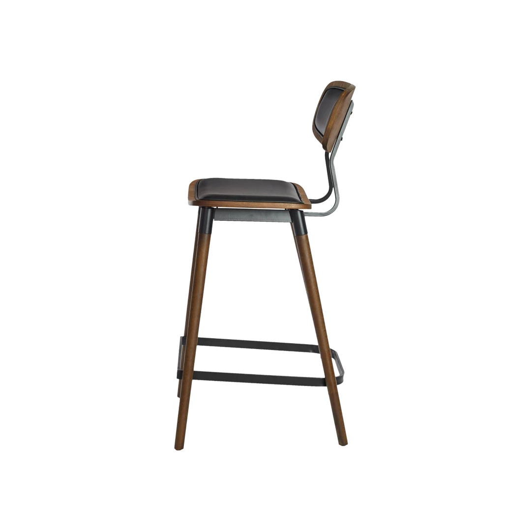 Fely BK is a refined barstool combining a durable steel frame with solid beech wood legs for a balanced look. The upholstered seat and backrest ensure comfort and are available in a wide range of professional fabrics or faux leather, resistant to wear. With a metal footrest and timeless design, it’s ideal for bars or horeca spaces of various interior styles.