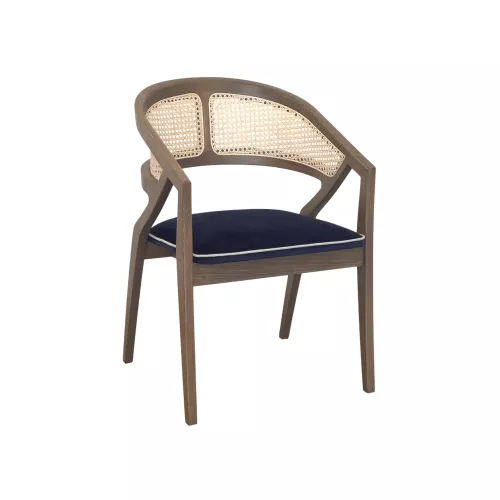 Discover the refined charm of the Freya chair — a perfect blend of classic design and contemporary elegance. Crafted with sturdy beech wood legs, this chair features a cane backrest that brings a touch of tradition and sophistication to any interior. The upholstered seat with custom fabric (COM) and decorative piping adds both comfort and style. Designed especially for indoor use in restaurants, cafes, and hospitality spaces, Freya combines durability, beauty, and a timeless aesthetic. A true expression of warmth and craftsmanship, ideal for venues seeking distinctive seating solutions.