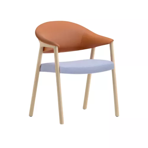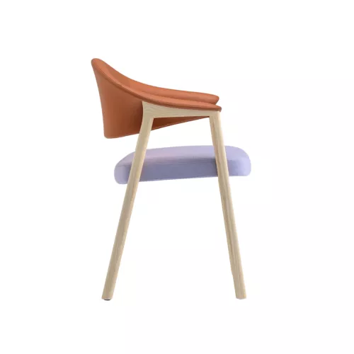 Defined by soft curves and an alluring sense of ease, this chair brings a new dimension of comfort to any refined setting. Its frame, crafted in ash wood or American walnut, embraces an ergonomic backrest made of injected polyurethane foam, offering a gentle and enveloping support. The generous seat, padded with polyurethane foam and reinforced with elastic belts, invites long moments of relaxation. Resting on oval-shaped solid wood legs, the silhouette feels fluid and harmonious, making it a beautiful choice for prestigious hospitality spaces such as elegant restaurants and hotels, as well as sophisticated residential interiors.