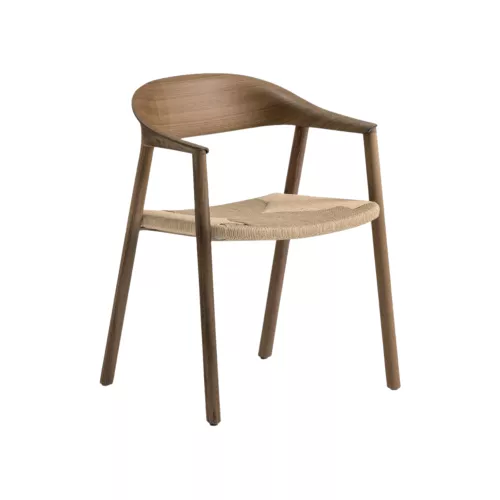 Defined by a delicate balance of lightness and warmth, this armchair celebrates natural materials and refined craftsmanship. The three-dimensional plywood backrest—available in ash or American walnut—feels sculptural yet effortless, offering graceful ergonomics and an inviting, easy-to-handle form. The seat, hand-woven in Italy from cellulose rope, adds a soft, organic texture that enhances the chair’s natural character. Oval-shaped wooden legs flow seamlessly into the backrest, creating a harmonious silhouette reminiscent of a finely carved sculpture. Elegant, tactile, and timeless, it brings an element of quiet sophistication to hospitality and residential spaces alike.
