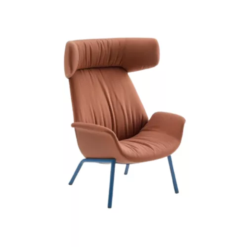 Ila 2022 is an elegant armchair featuring a rigid polyurethane outer shell and a soft, flexible polyurethane inner shell for exceptional comfort. Supported by a sturdy Ø30 mm steel tube frame, it comes with or without a headrest. Fully upholstered and refined, it’s perfect for interior lounges, hotels, and stylish restaurants.