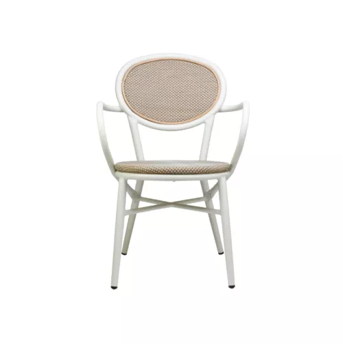 Jareth A White/Sand is the perfect fusion of elegance and functionality for terrace seating in restaurants, cafés, or bistros. Designed with a sturdy aluminium frame in a sophisticated natural woodlook finish, this chair brings the warmth of wood with the durability of metal. Its UV-resistant surface ensures color retention and weather resistance, making it ideal for outdoor use. The 5mm flat PE webbing detail adds both comfort and modern appeal to the design. With stackable functionality, Jareth A offers practical storage solutions without compromising style. Finished in a refined Natural Woodlook/Beige tone, it complements a wide range of outdoor dining environments with ease.