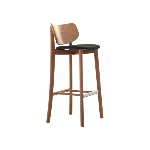 The Javiro BK UPS wooden barstool combines elegance, comfort, and versatility. Its solid beech wood frame, aluminum-protected footrest, upholstered seat, and wooden backrest offer durability and style. Defined by simple yet characterful lines, it adapts effortlessly to any contemporary or classic horeca environment.