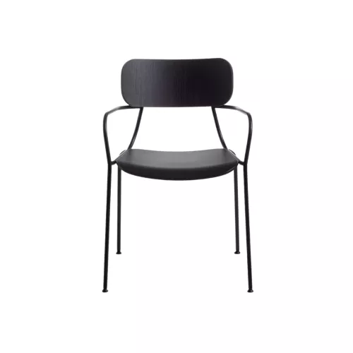 The Kiyumi Wood A is a stylish 4-legged chair featuring a black painted steel frame combined with a tinted ash veneered plywood seat and backrest. The frame is available in several finishes, including M7 Black, M8 Brown, M12 Graphite, M16 Milk, M19 Oxide red, and M24 Beige. The seat and backrest come in a variety of veneer options, such as W1 Natural, W2 Black, W3 Walnut, W4 Cherry, and W5 Wenge, allowing you to customize the chair to suit your interior style.