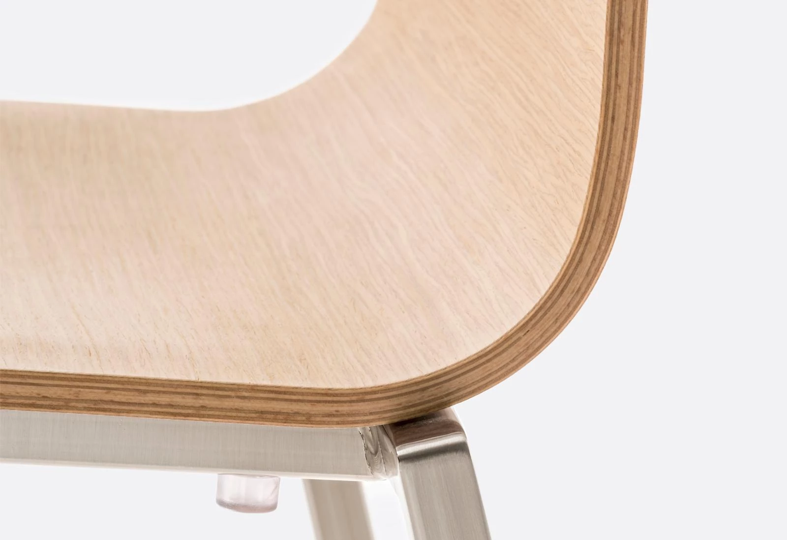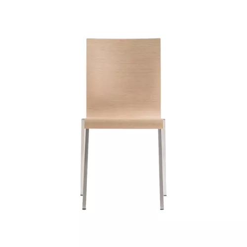 Kuadra 1321 merges minimalist elegance with ergonomic design. Its iconic oak-veneered plywood shell and curved backrest ensure comfort, while the 20x20 mm square steel tube frame adds stability. Stackable up to 8 pieces, it's ideal for contemporary contract spaces.