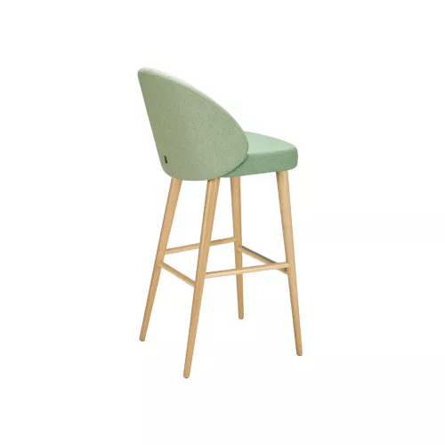 A refined and versatile barstool featuring an upholstered seat and back that offer both comfort and timeless appeal. Its simple yet elegant design allows it to adapt effortlessly to any interior style, from contemporary to classic settings. The legs, crafted from stained beech wood, bring natural warmth and durability to the piece. The seat is made with high-density foam to ensure long-lasting comfort and resistance to intense daily use. Available in a wide selection of professional fabrics, with a rich palette of colors and textures to suit any Horeca environment.