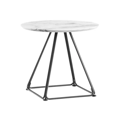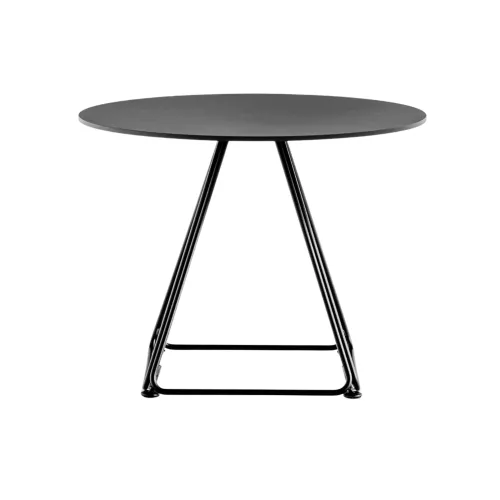 Lunar is a short table base that can be very easily placed in any decor. The base consists of four trapezoidal steel rods and can be combined with tops of different sizes and finishes. Top maxim size 80x80 or 80cm diameter. Table top non included, but can be ordered separately.