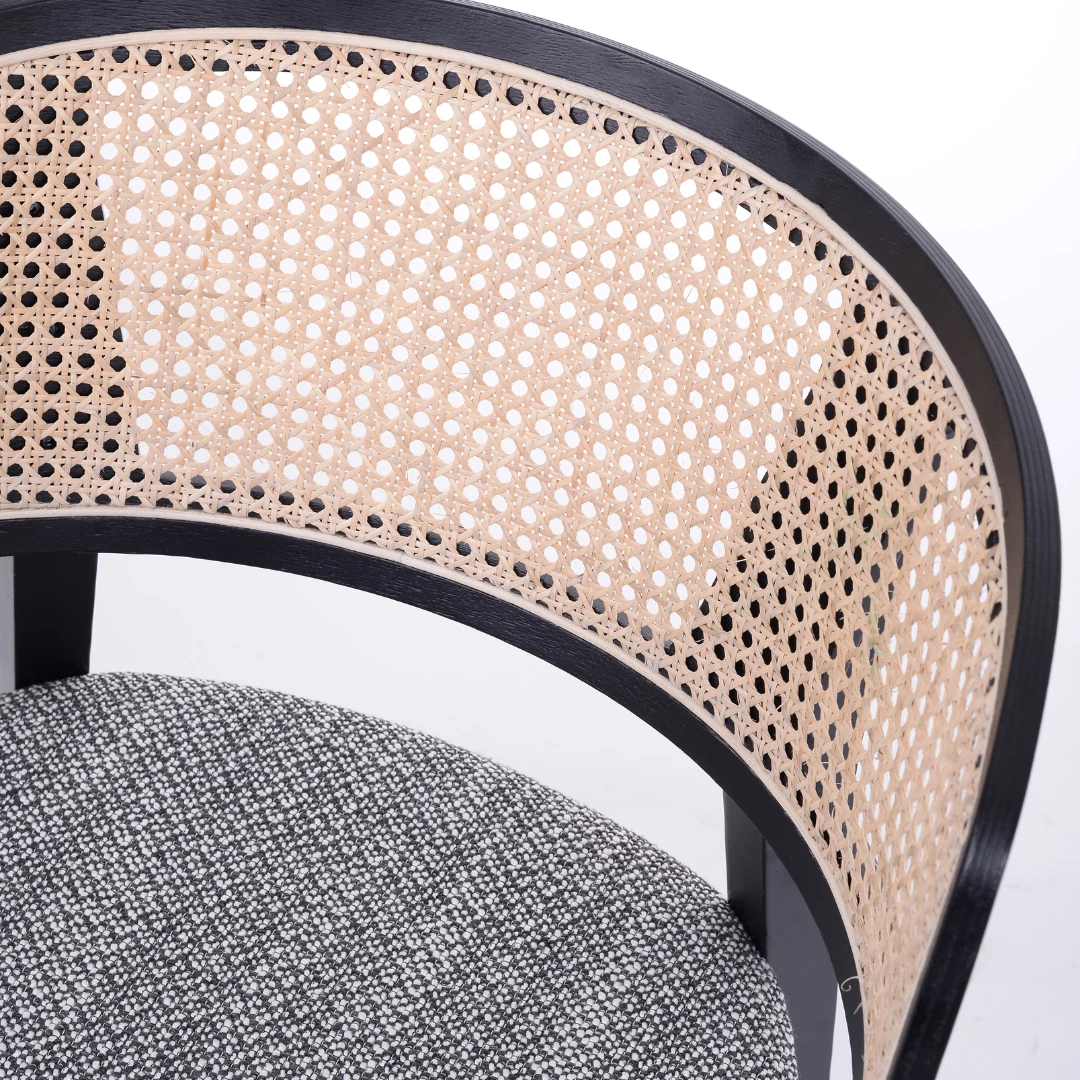 This beautifully designed restaurant chair offers both durability and timeless elegance. Crafted from solid beech or oak wood with a natural finish, it features a comfortable upholstered seat and a refined hand-woven cane backrest. Inspired by mid-century aesthetics, the chair blends classic charm with modern functionality, making it an excellent choice for restaurants, cafés, and hospitality interiors seeking a warm yet sophisticated look.