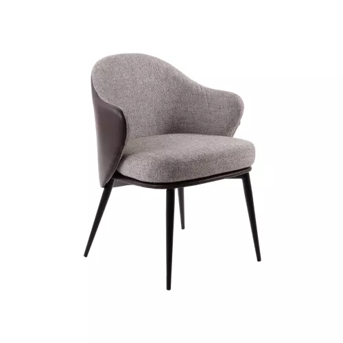 The Mary chair presents a refined and distinctive silhouette, featuring an elegantly curved, elongated backrest that subtly evokes the shape of a flowing skirt—an aesthetic detail that enhances its graceful presence. The robust metal frame is fully customizable, allowing for a wide range of color options to seamlessly complement any interior style. A standout element is the uniquely curved front edge of the seat, thoughtfully designed not only to define its dynamic profile but also to provide enhanced seating comfort. Mary is available with an extensive variety of upholstery materials, textures, and color palettes, offering endless possibilities for tailoring the chair to suit diverse environments and design visions.