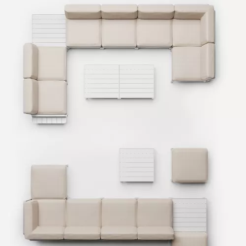 The Maximo Elemento Centrale Sofa is a central seating unit from a versatile modular lounge system, ideal for outdoor settings. Crafted from regenerated, UV-resistant fiberglass polypropylene, it features a seamless design and a screwless system that allows the attachment of armrests or backrests on any side. The upholstered cushions come with removable zip covers, offering both style and practicality. Perfect for horeca lounge areas.
