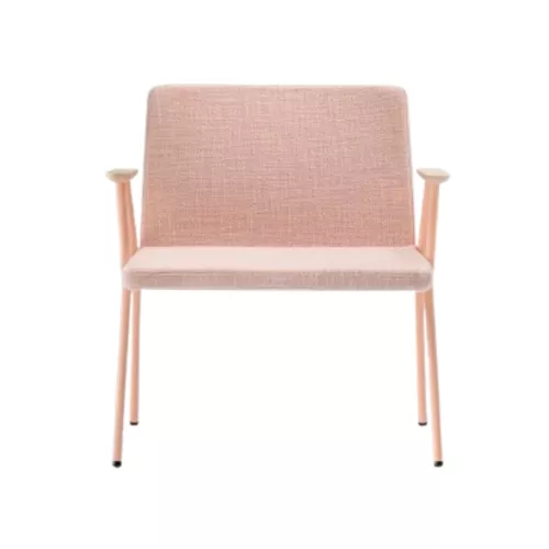 Osaka 5729 – a refined lounge chair with a Ø20 mm tubular steel frame, elegant ash armrests, and a padded shell upholstered in fabric, leather, or faux leather. Combining comfort and style, it’s perfect for indoor lounges, creating inviting and sophisticated seating areas.