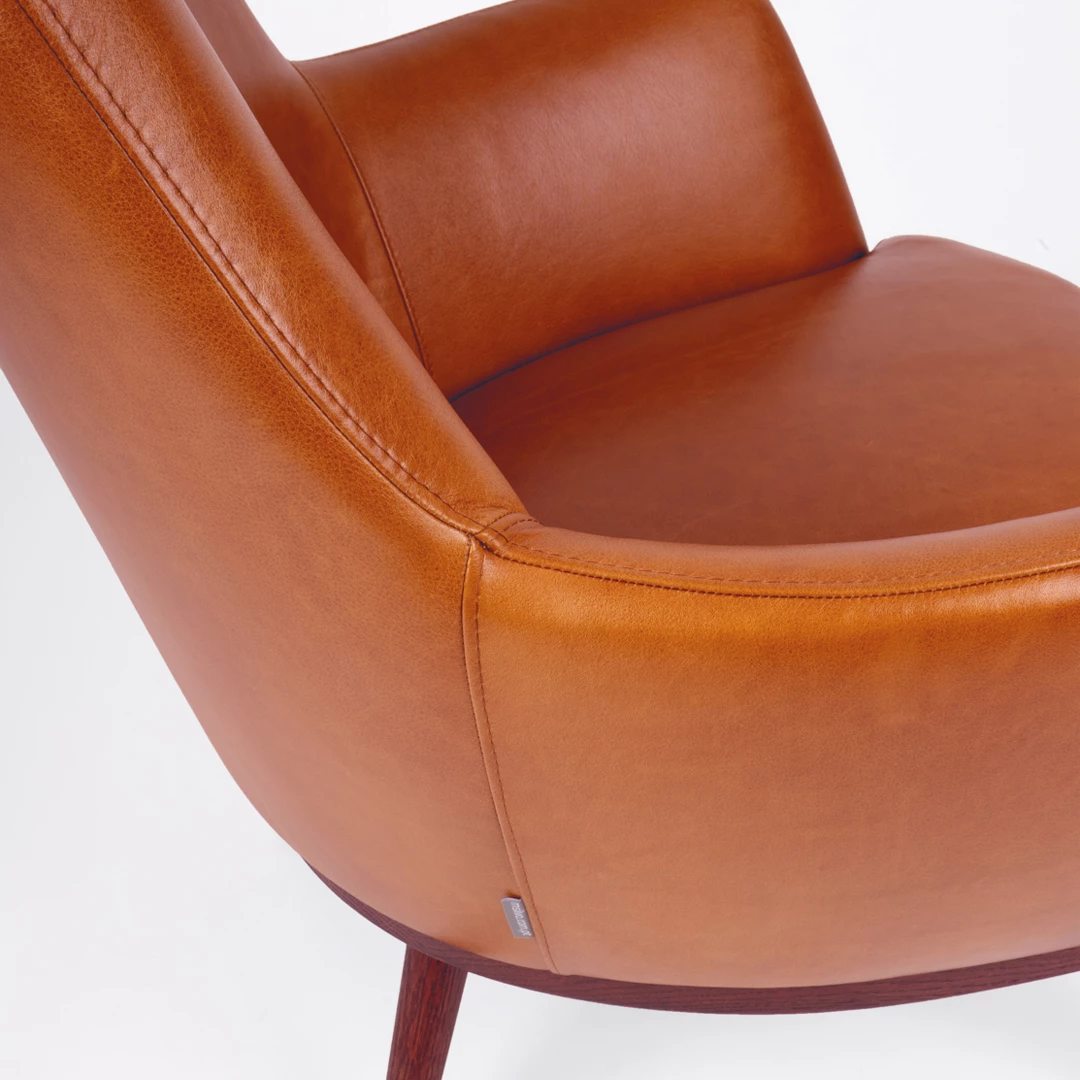 Shine Lounge GL is an elegant lounge armchair with armrests, featuring an ash wood frame and soft upholstery for superior comfort. Priced with piping included, it is perfect for indoor restaurants, combining style, durability, and inviting charm for a refined dining or lounge experience.