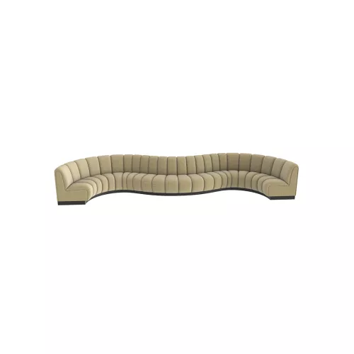 The Snake Bench is a custom-made dining bench crafted with a sturdy beech-wood frame and a fully upholstered seat and backrest. Designed to match any interior, it offers extensive customization options and a wide selection of professional fabrics or faux leather. Ideal for diverse horeca environments, it brings tailored comfort and refined style to any setting.