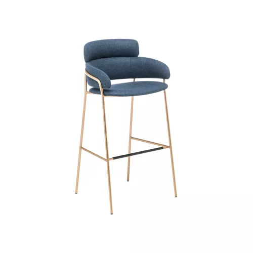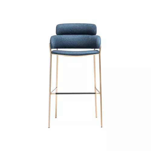 Strike BK is a refined barstool featuring a sleek painted or chromed steel frame and an upholstered seat and back. Its distinctive silhouette comes from the slim metal tube that wraps around a double-padded backrest, ensuring comfort and durability. Available in a wide range of contract-grade fabrics or faux leather, it brings both elegance and practicality to any bar or hospitality setting.
