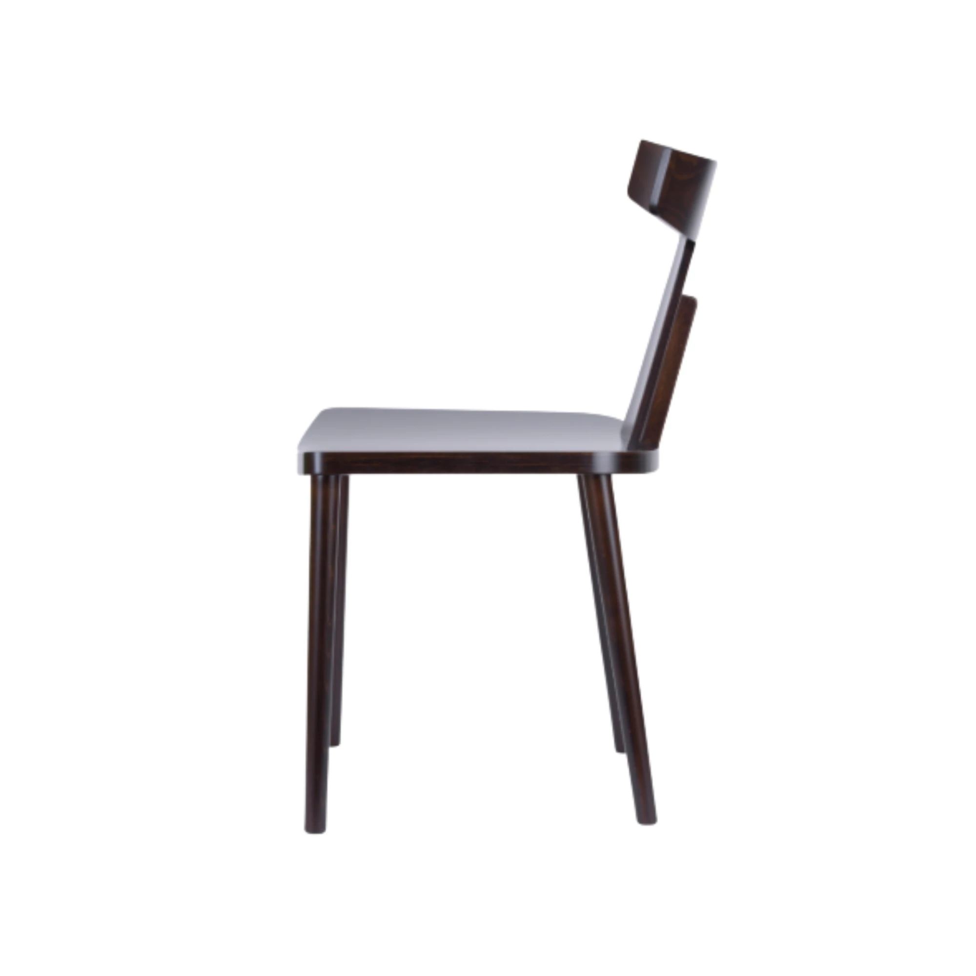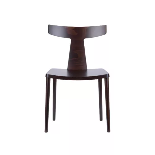T Chair is made of beech wood and is ideal for restaurants, cafés, bistros, and pubs. The seat can be veneered or upholstered in a wide range of colors and textures, allowing it to blend seamlessly into any interior design.
